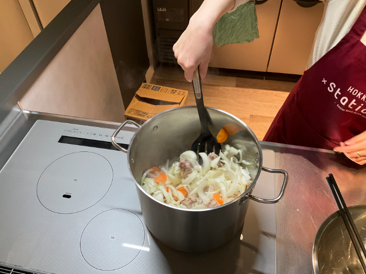 昼過ぎからキッチンで準備し、寸胴鍋でコトコト煮込んだシチューは絶品!