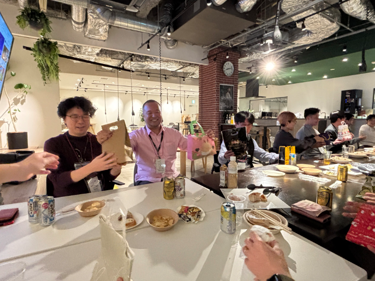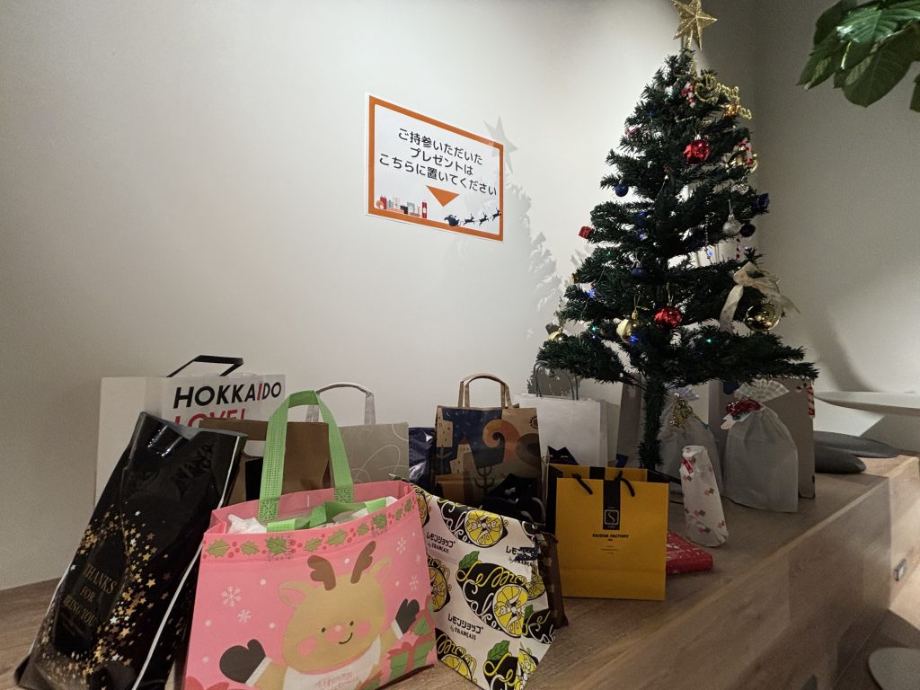初のプレゼント交換で大盛り上がり