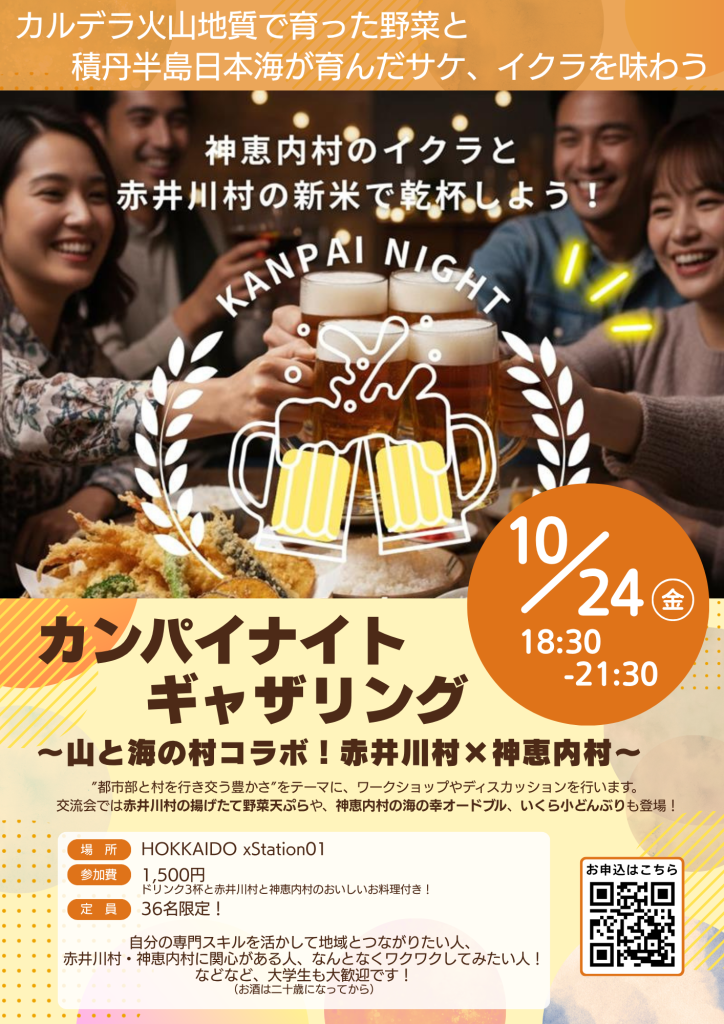 10/24(金)赤井川村カンパイナイトギャザリング~山と海の村コラボ!赤井川村×神恵内村~開催! - 地域事業インキュベーション施設|HOKKAIDOxStation01-SocialGoodBirthHub-