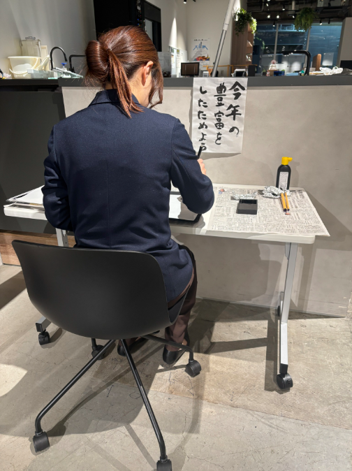 新年恒例行事として、書初めと鏡開きを行いました。 そこには参加者それぞれが筆を手に取り、仕事や日々の想い、今年の目標を文字に込めて書き上げる姿が。 鏡開きでは自然と会話が生まれ、新しい一年のスタートを分かち合う、あたたかな時間となりました。