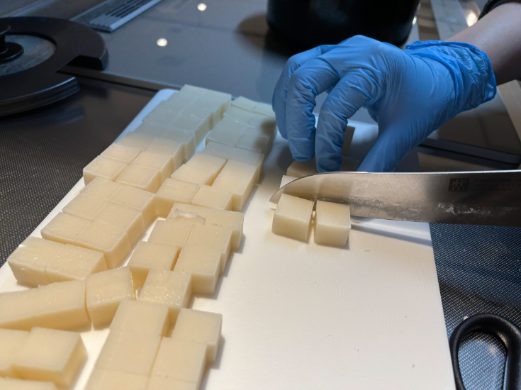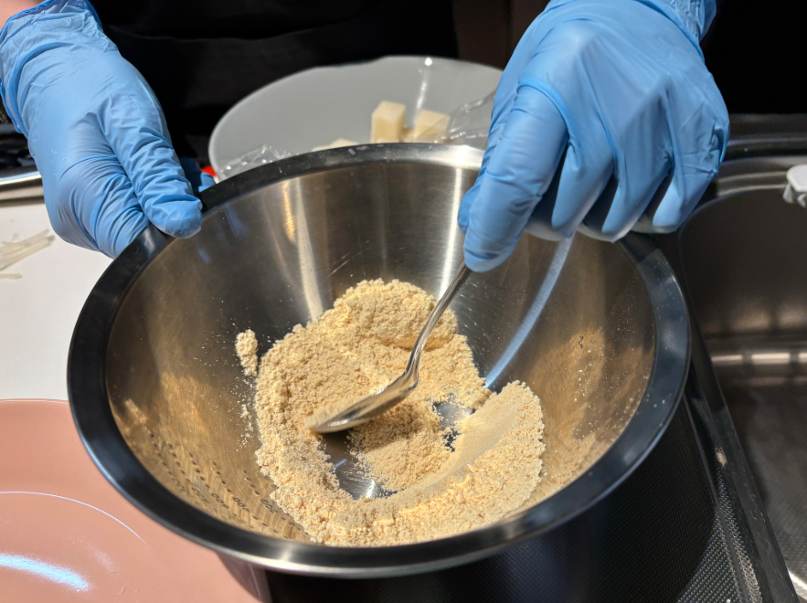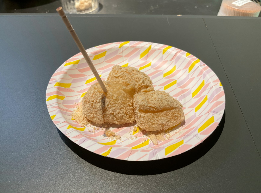 今回のきな粉餅は、お餅を8等分の1口サイズにカットし、沸騰したお鍋で数分茹でて柔らかく仕上げ、きな粉をまぶして完成。
