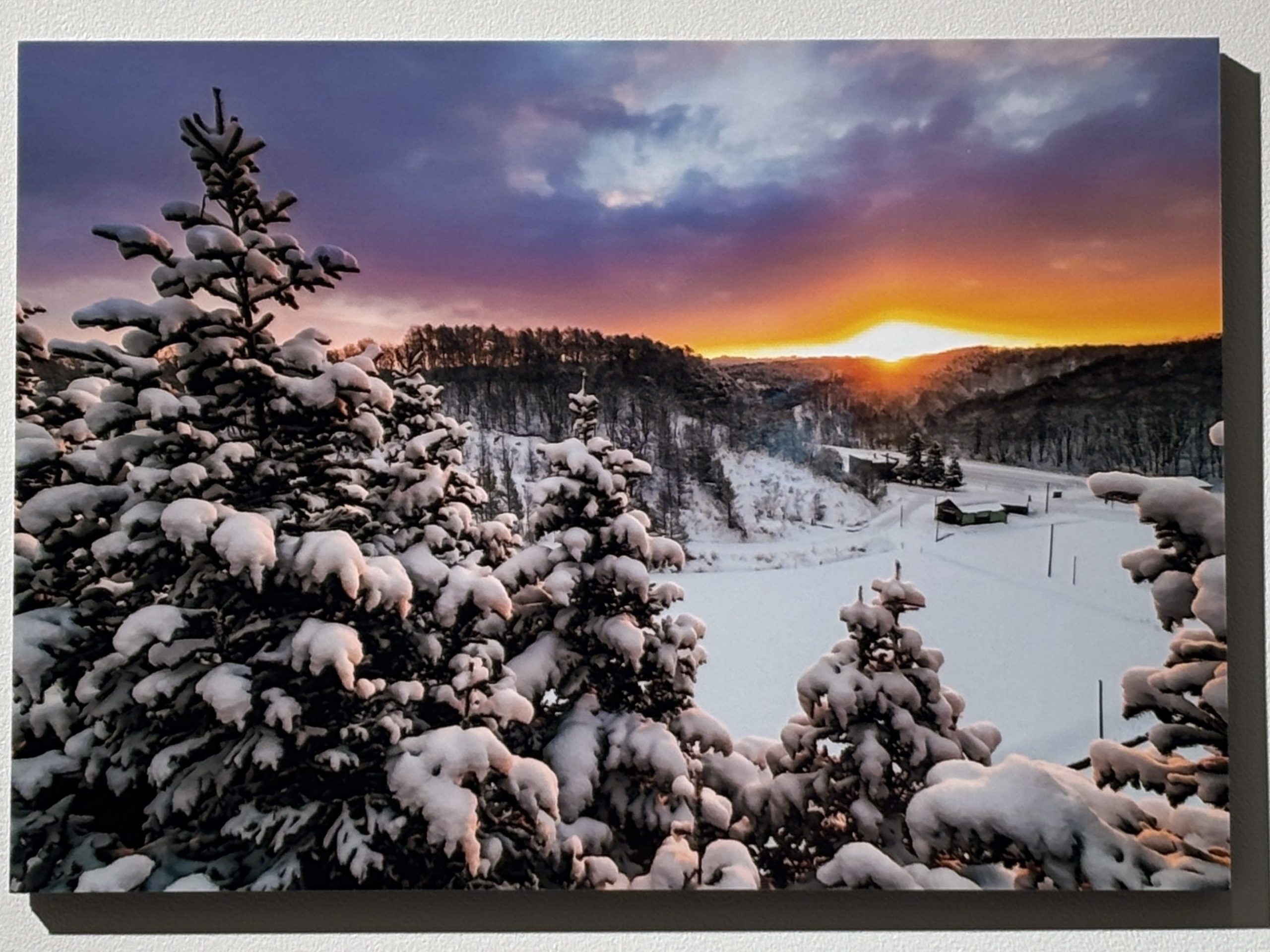 自宅の玄関でコーヒーを手にした朝、目の前に広がる景色に思わずカメラとドローンを構えたという一枚は必見。美しく広がる朝焼けと雪のコントラストは絶景。