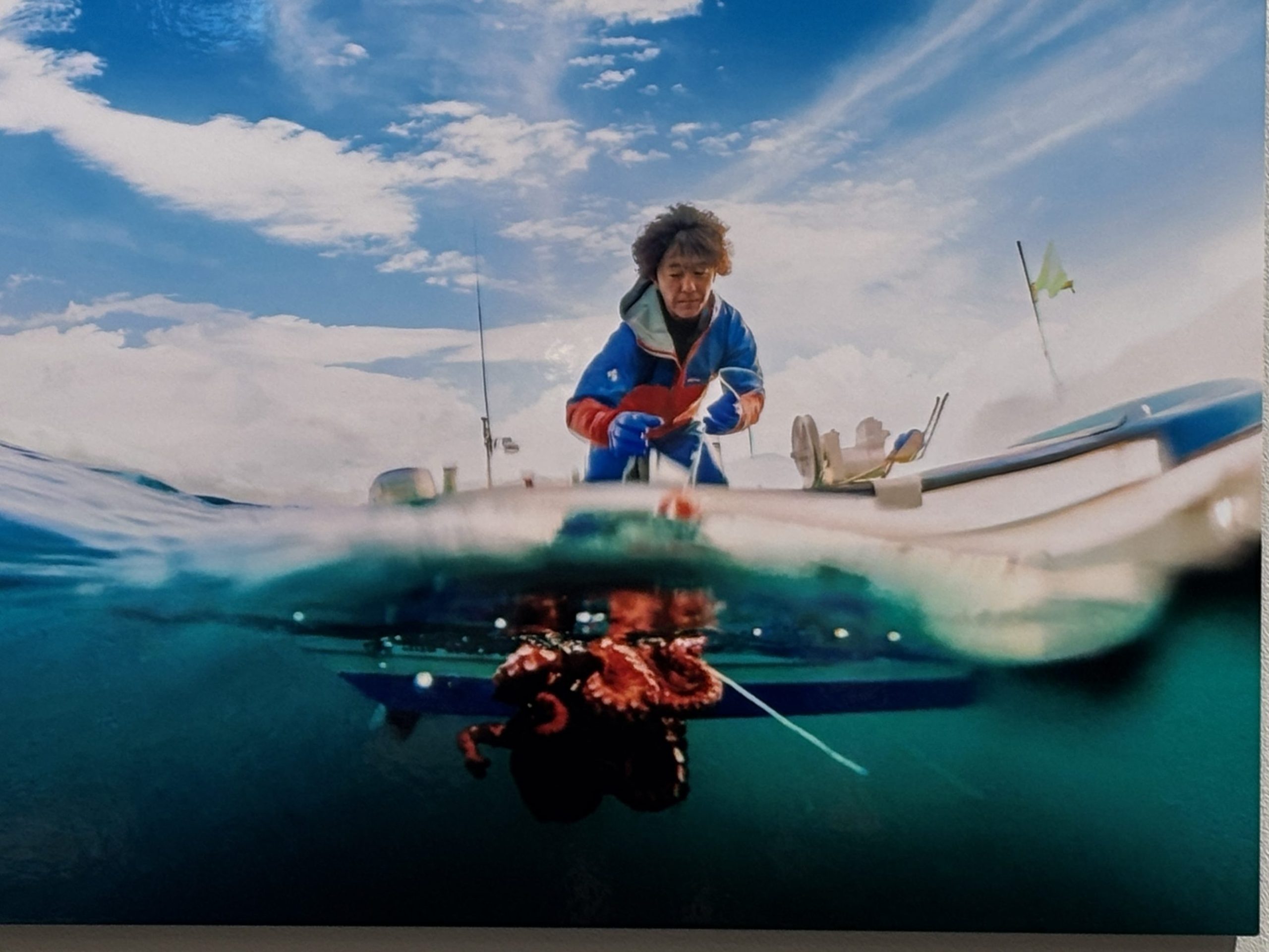 漁師・猟師・農家。苫前の暮らしを支える人たちの日常が、凛とした距離感で写っています。名産のタコ漁を水中から捉えた写真は、力強さと静けさが同居する印象的なシリーズです。
