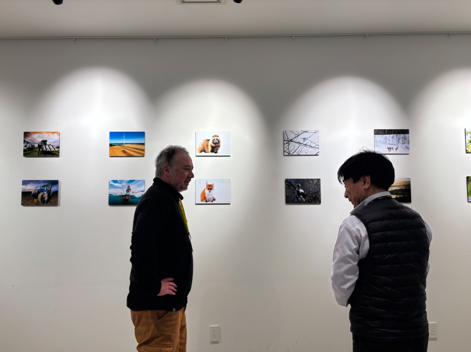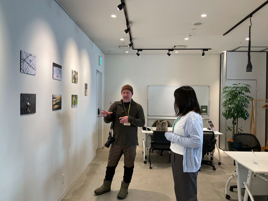開催初日はピートさんが在廊し、観覧者と気さくに会話を楽しみました。撮影の裏話や、苫前での暮らし、地域にかける思いまで、たくさんの話題が生まれました。